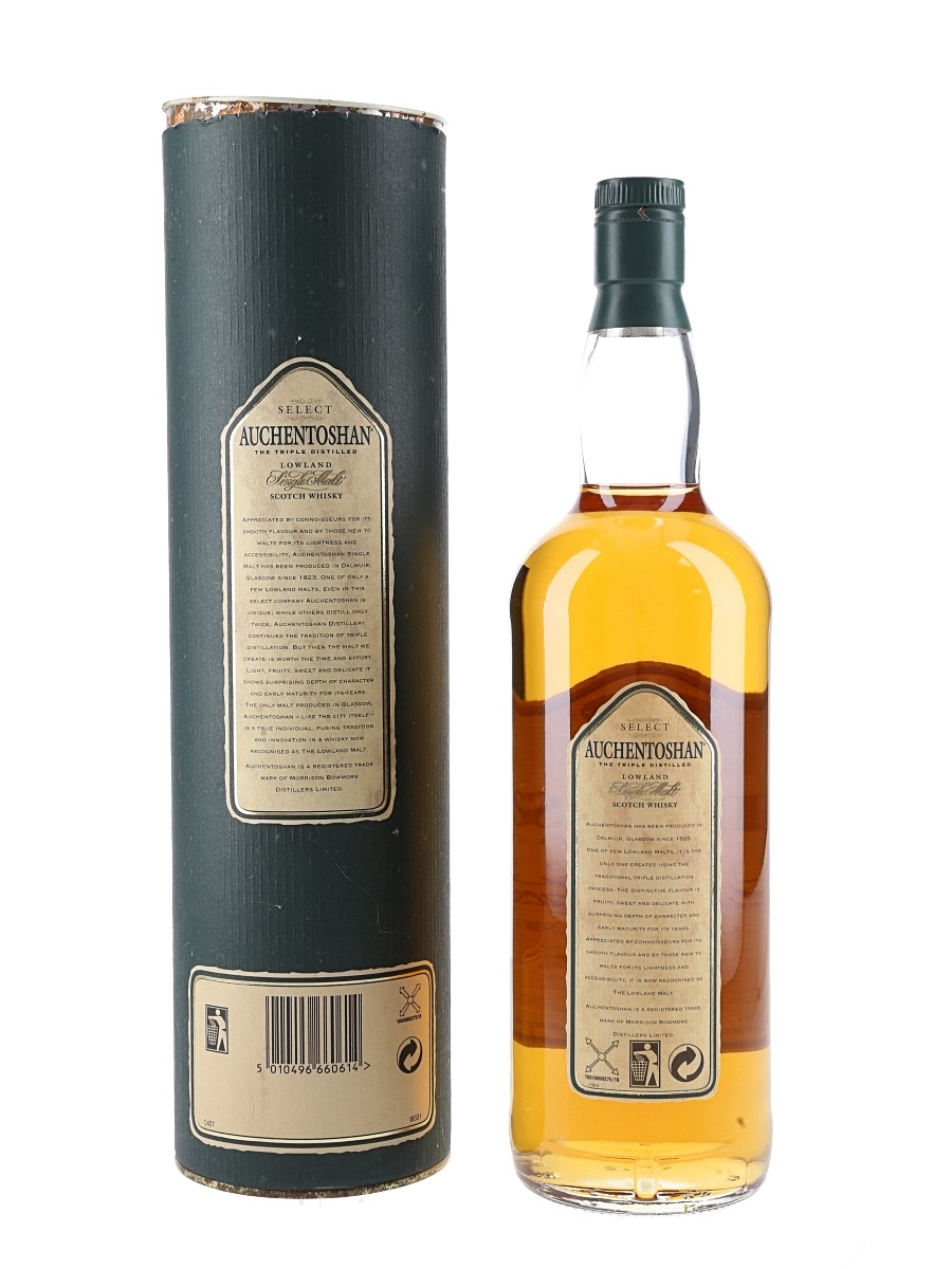 A litre bottle of Auchentoshan Select Lowland Single Malt Scotch Whisky, a triple distilled single malt from the Lowland region.