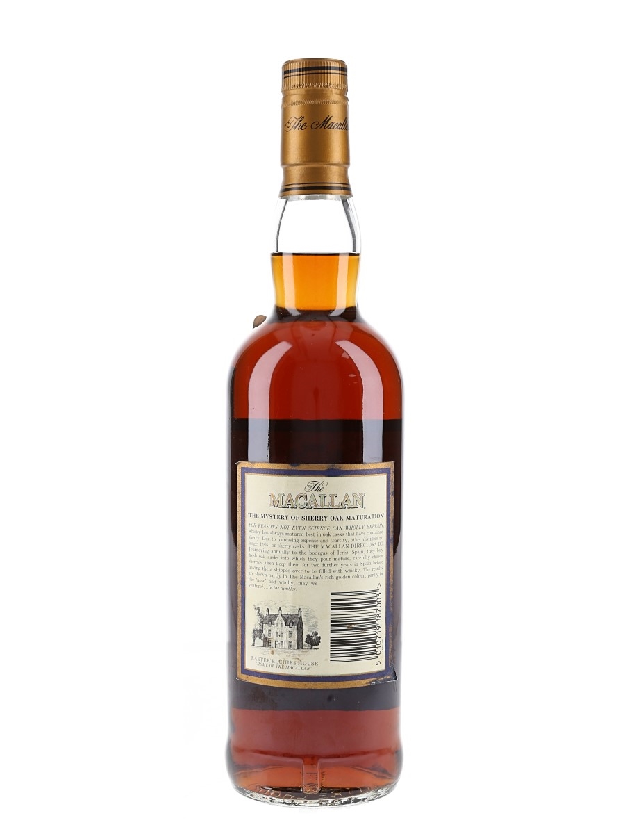 A bottle of The Macallan 18 Year Old Single Highland Malt Scotch Whisky. This was distilled in 1983 and matured exclusively in sherry oak casks from Jerez.