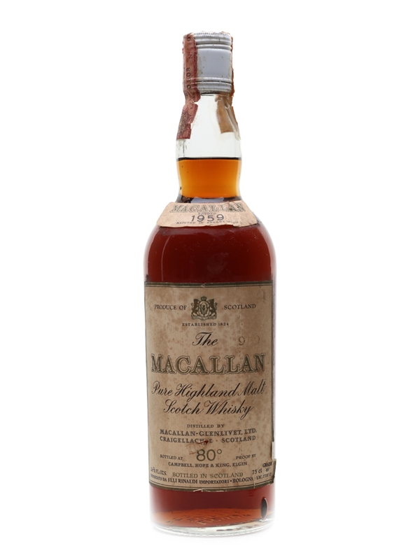 A bottle of The Macallan 1959, imported by Rinaldi for the Italian market. We estimate this was bottled in the 1970s.