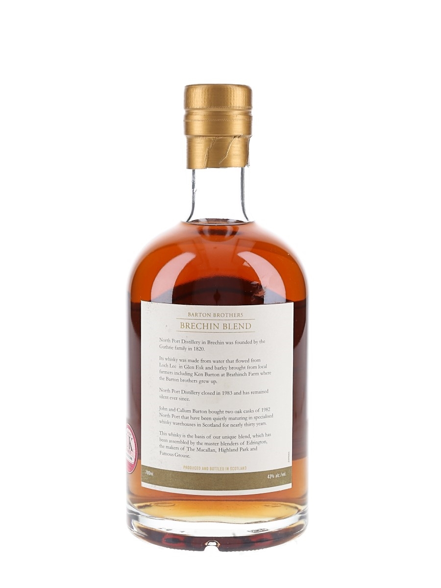 A bottle of Brechin Blend 25 Year Old Blended Scotch Whisky bottled by Barton Brothers. Two casks of 1982 North Port form the basis of this blend.