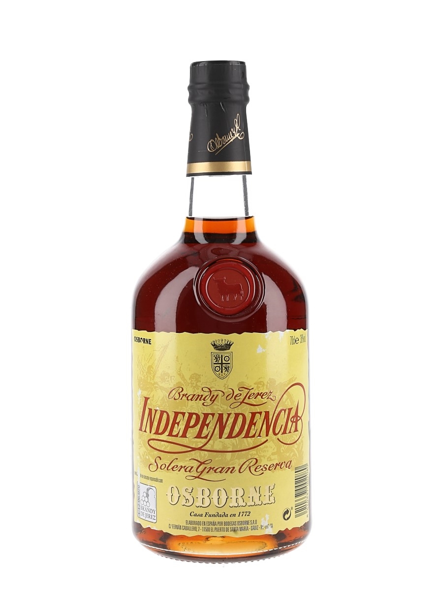 A bottle of Osborne Independencia Solera Gran Reserva Brandy de Jerez from Spain.