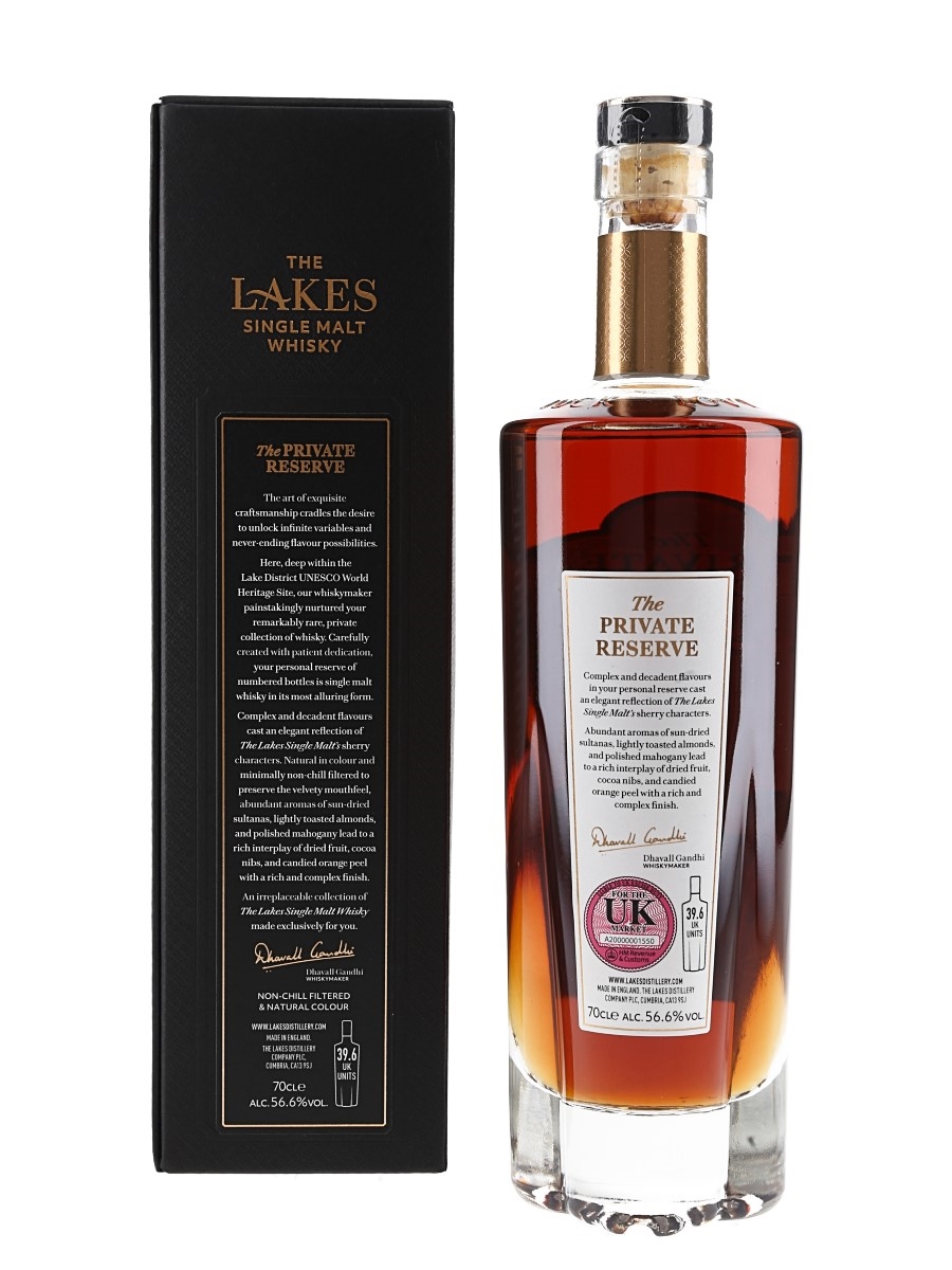 'Complex and decadent flavours in your personal reserve cast an elegant reflection of The Lakes Single Malt's sherry characters.