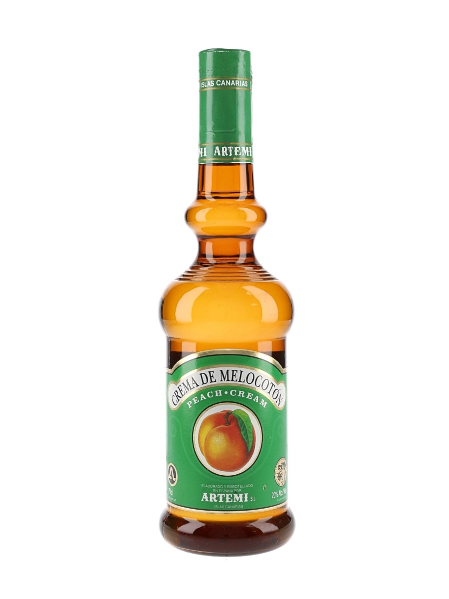 A bottle of Artemi Crema de Melocoton from the Canary Islands.