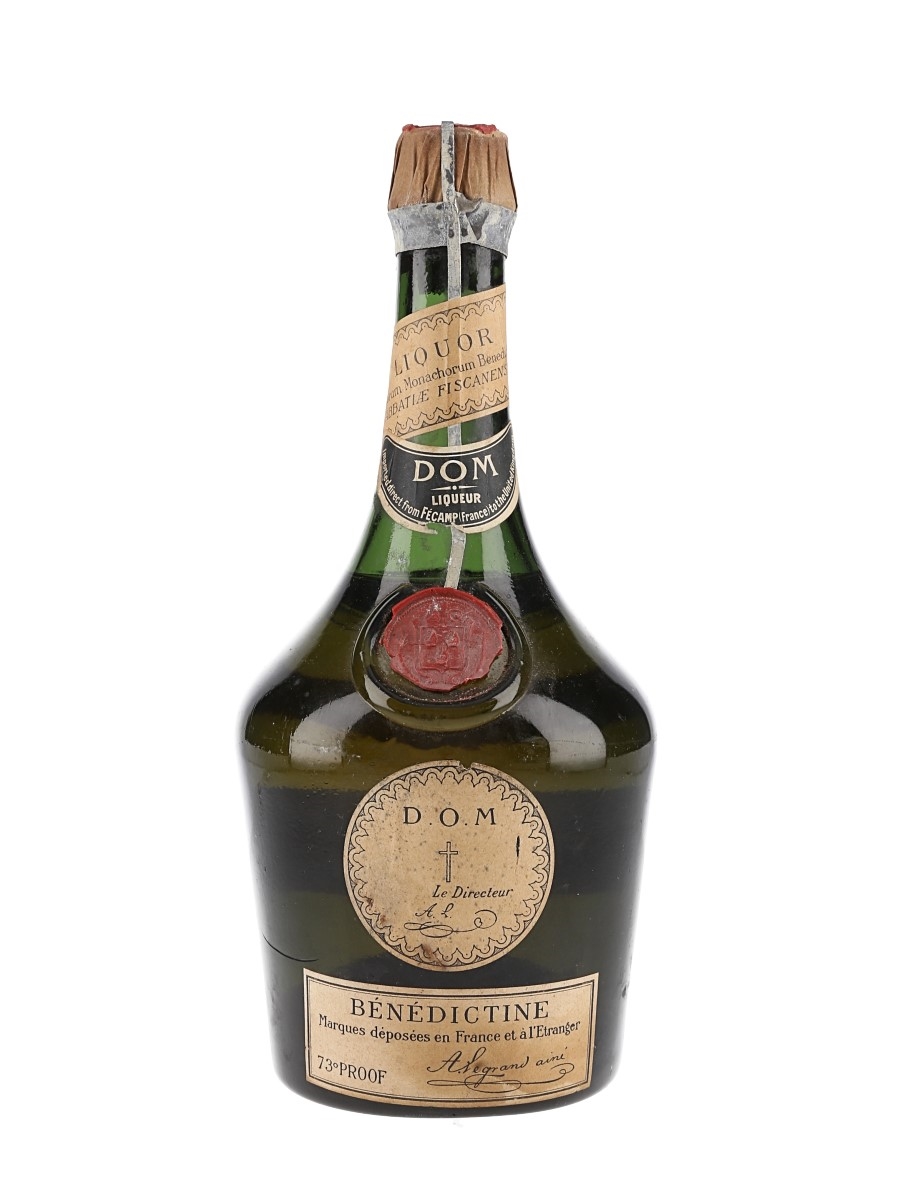 A bottle of Benedictine DOM liqueur, imported to the UK direct from France. We estimate this was bottled in the 1940s.