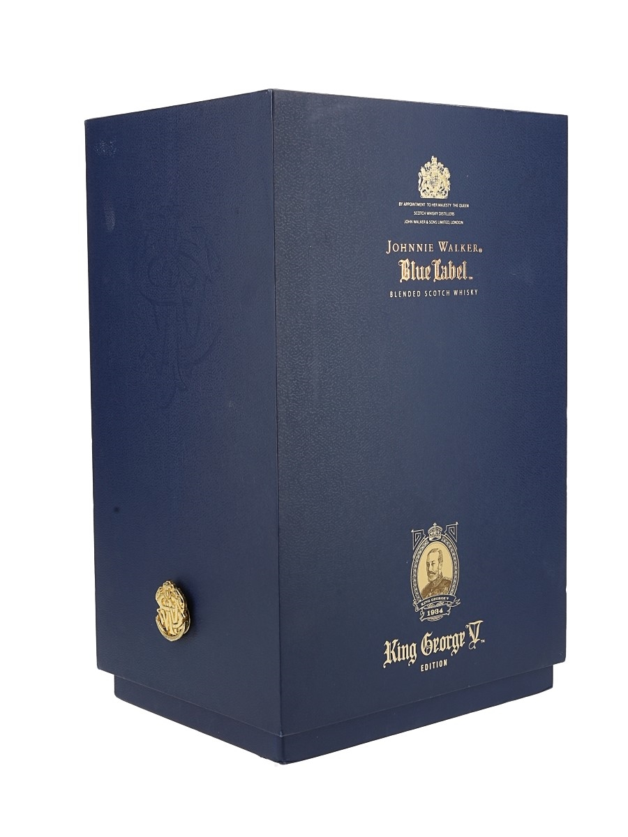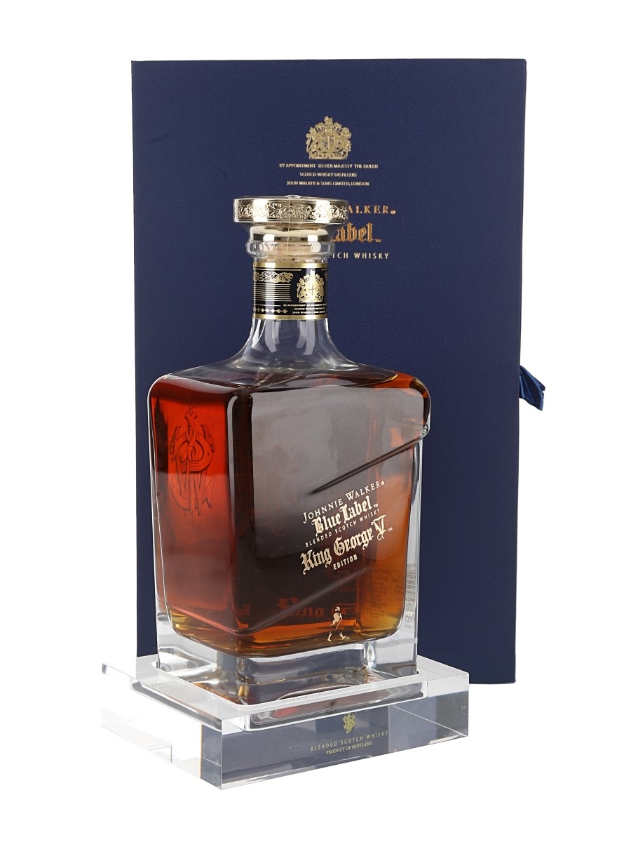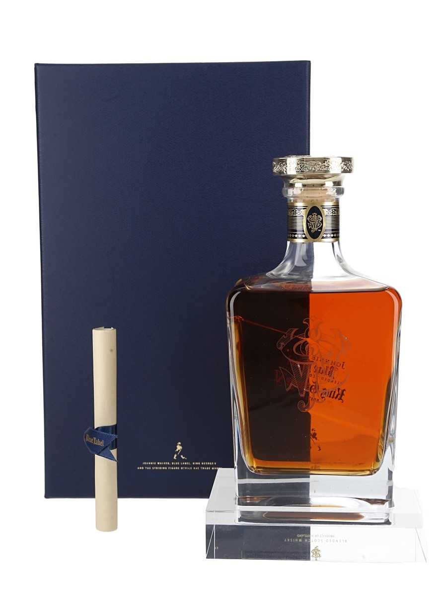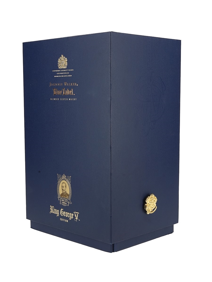 A bottle of Johnnie Walker Blue Label King George V Blended Scotch Whisky.