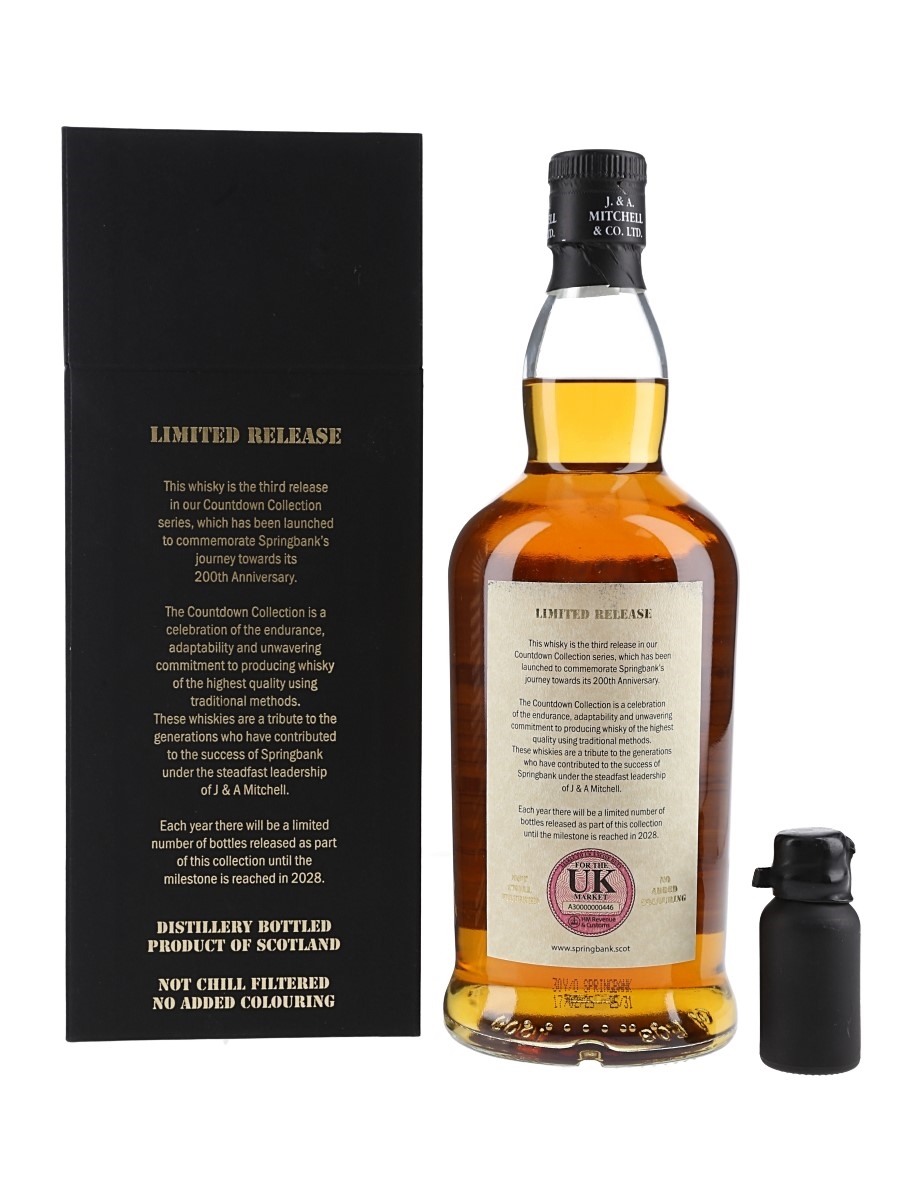 A bottle of Springbank 30 Year Old Campbeltown Single Malt Scotch Whisky. This is the last release in the Countdown Collection series, which has been launched to commemorate Springbank's journey towards its 200th Anniversary in 2028. The bottling code indicates this was bottled on 17 February 2025.