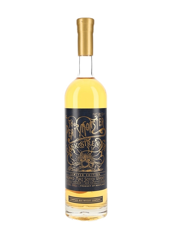 A 150cl bottle of The Peat Monster Cask Strength Limited Edition Blended Malt Scotch Whisky from Compass Box. This is a blend of heavily-peated Islay and Highland malts, matured in first-fill and refill American oak casks and bottled at a cask strength of 57.3% ABV.