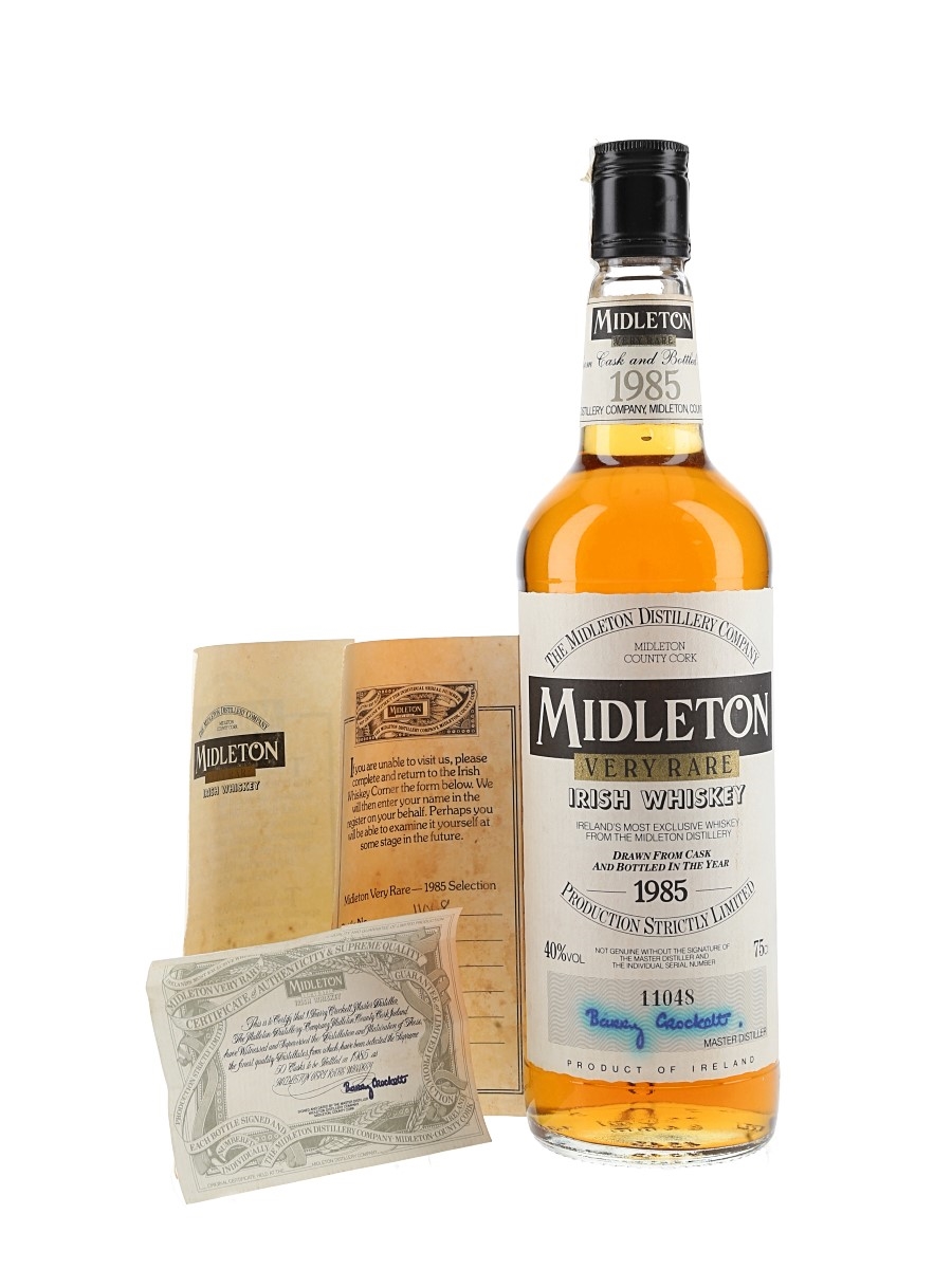 A bottle of Midleton Very Rare Irish Whiskey bottled in 1985. Every year since 1984, a new release has been produced and bottled in limited quantities.