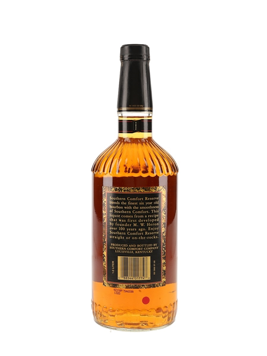A litre bottle of Southern Comfort Reserve 100 Proof, a blend of Southern Comfort Liqueur and 6 Year Old straight Bourbon Whisky. We estimate this was bottled in the 1990s.
