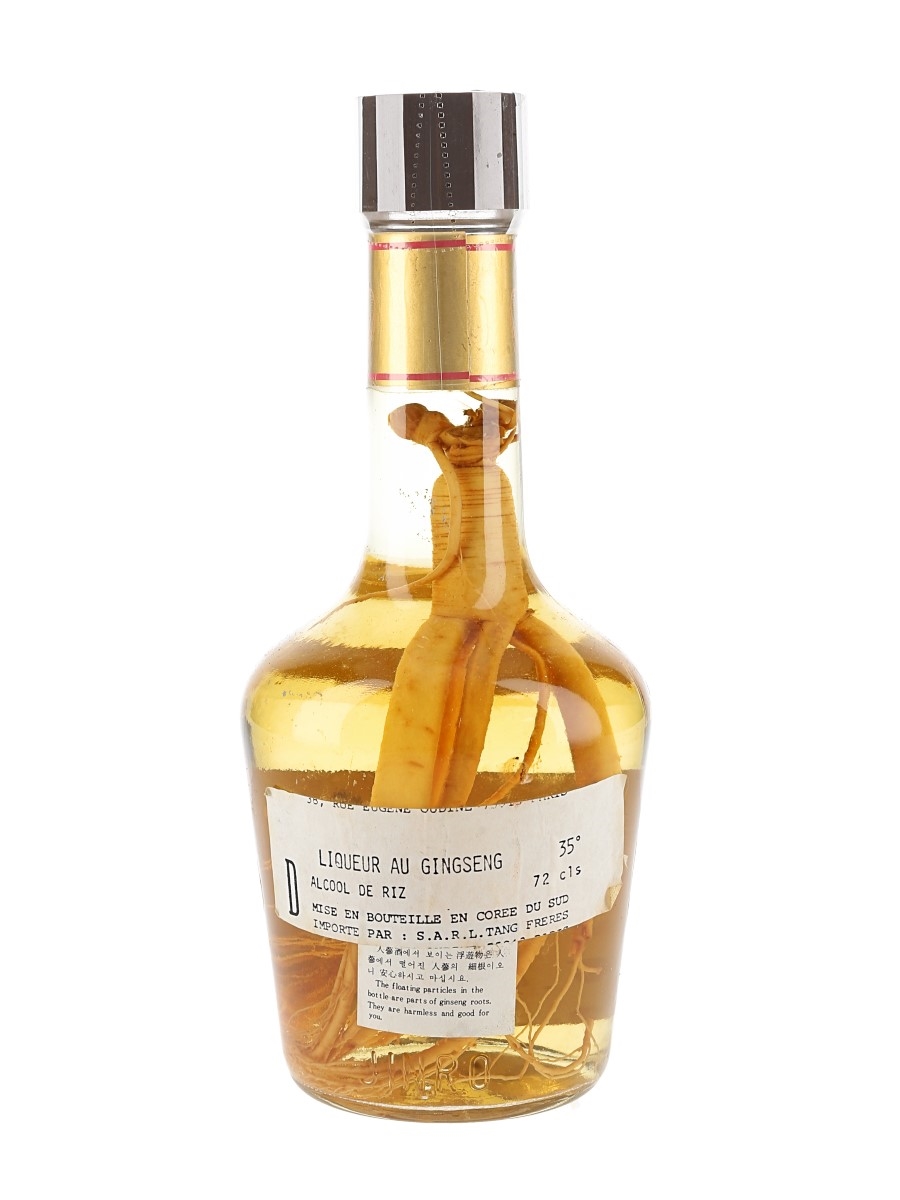 A bottle of Elixir Special Ginseng De Coree, produced in Korea by Jinro Limited.