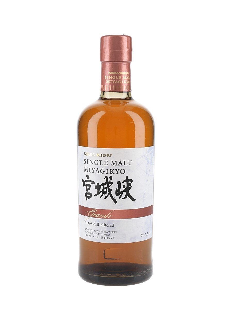 A bottle of Nikka Miyagikyo Grande Whisky produced in Japan and bottled at 48% ABV.