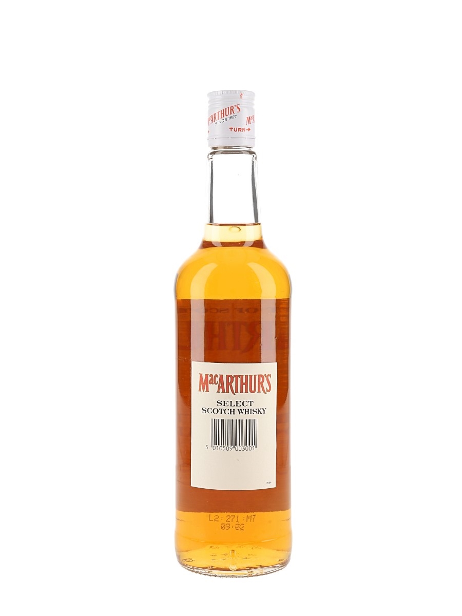 A bottle of MacArthur's Select Scotch whisky, produced by J.MacArthur Jr & Co of Airdrie in Lanarkshire.