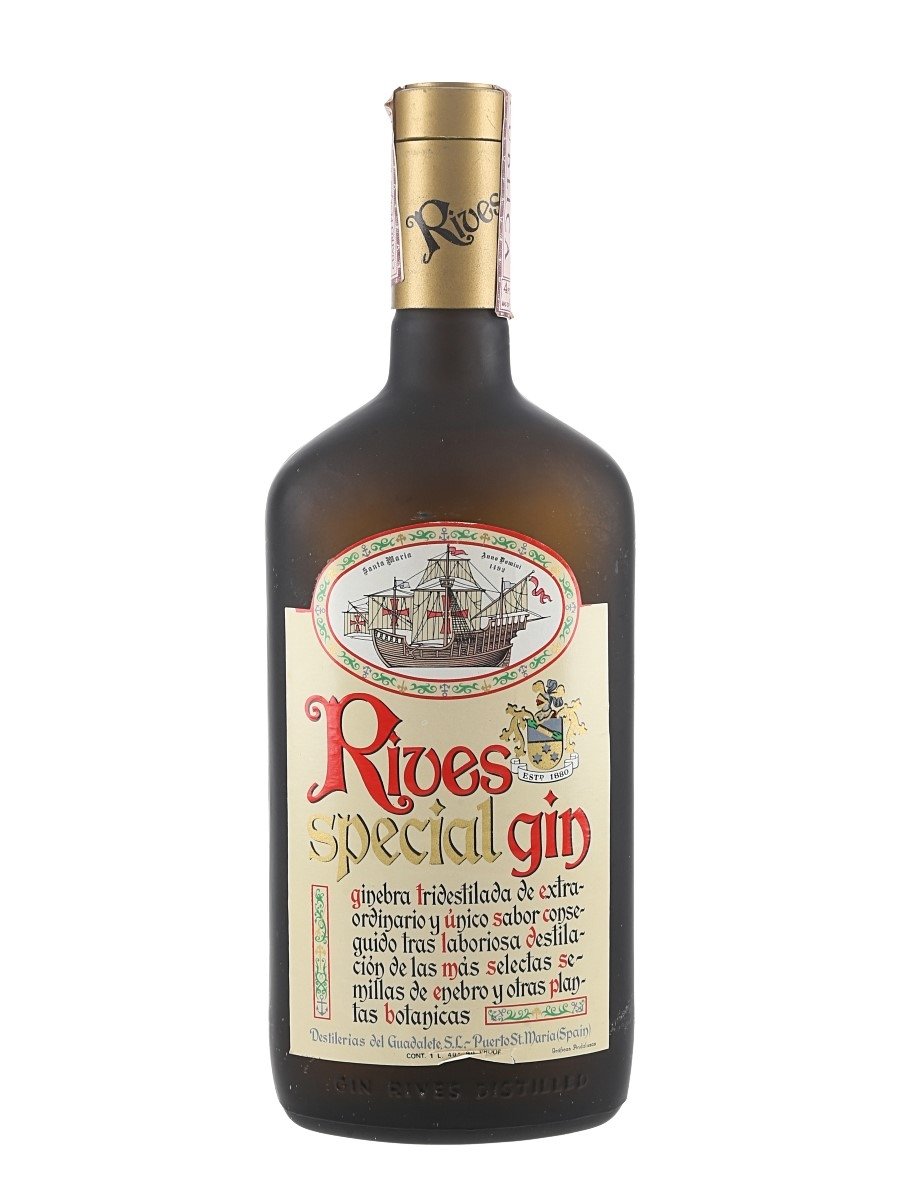 A bottle of Rives Special Gin from Spain. We estimate this was bottled in the 1970s.