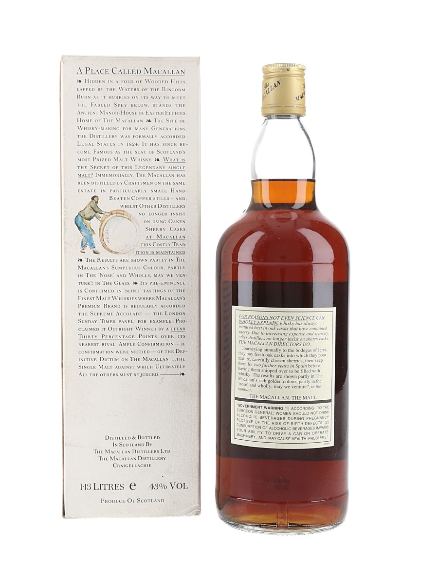 A 113cl bottle of The Macallan 12 Year Old Single Highland Malt Scotch Whisky, matured in sherry wood. We estimate this was bottled in the 1990s.