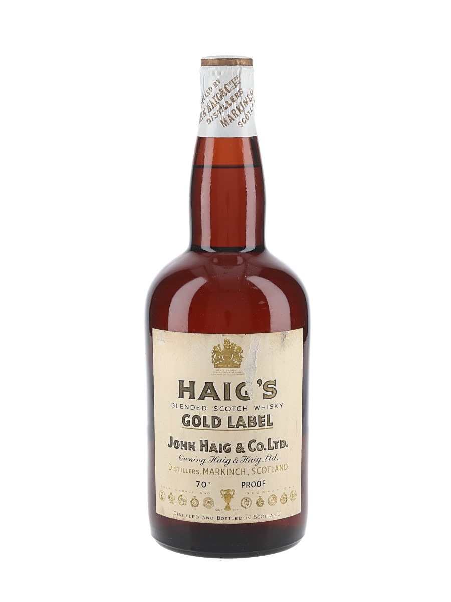 A bottle of Haig's Gold Label Blended Scotch Whisky, sealed with a spring cap closure. We estimate this was bottled in the 1960s.