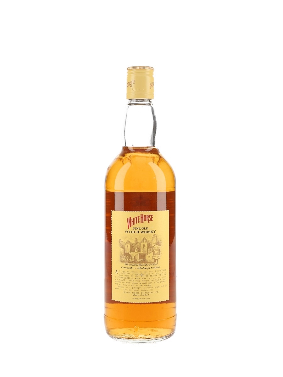 A bottle of White Horse Scotch Whisky distilled, blended and bottled in Scotland by White Horse Distillers Ltd. We estimate this was bottled in the 1970s.