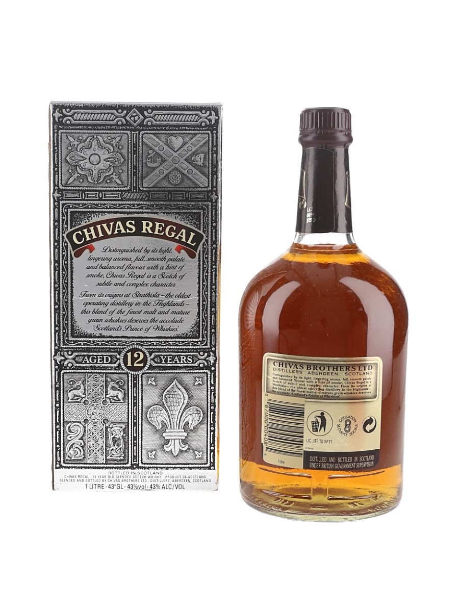 A litre bottle of Chivas Regal 12 Year Old Blended Scotch Whisky, blended by Chivas Brothers Ltd. We estimate this was bottled in the 1990s.