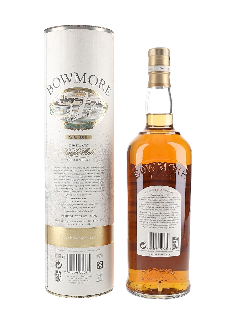 A litre bottle of Bowmore Surf. We estimate this was bottled in the 1990s.