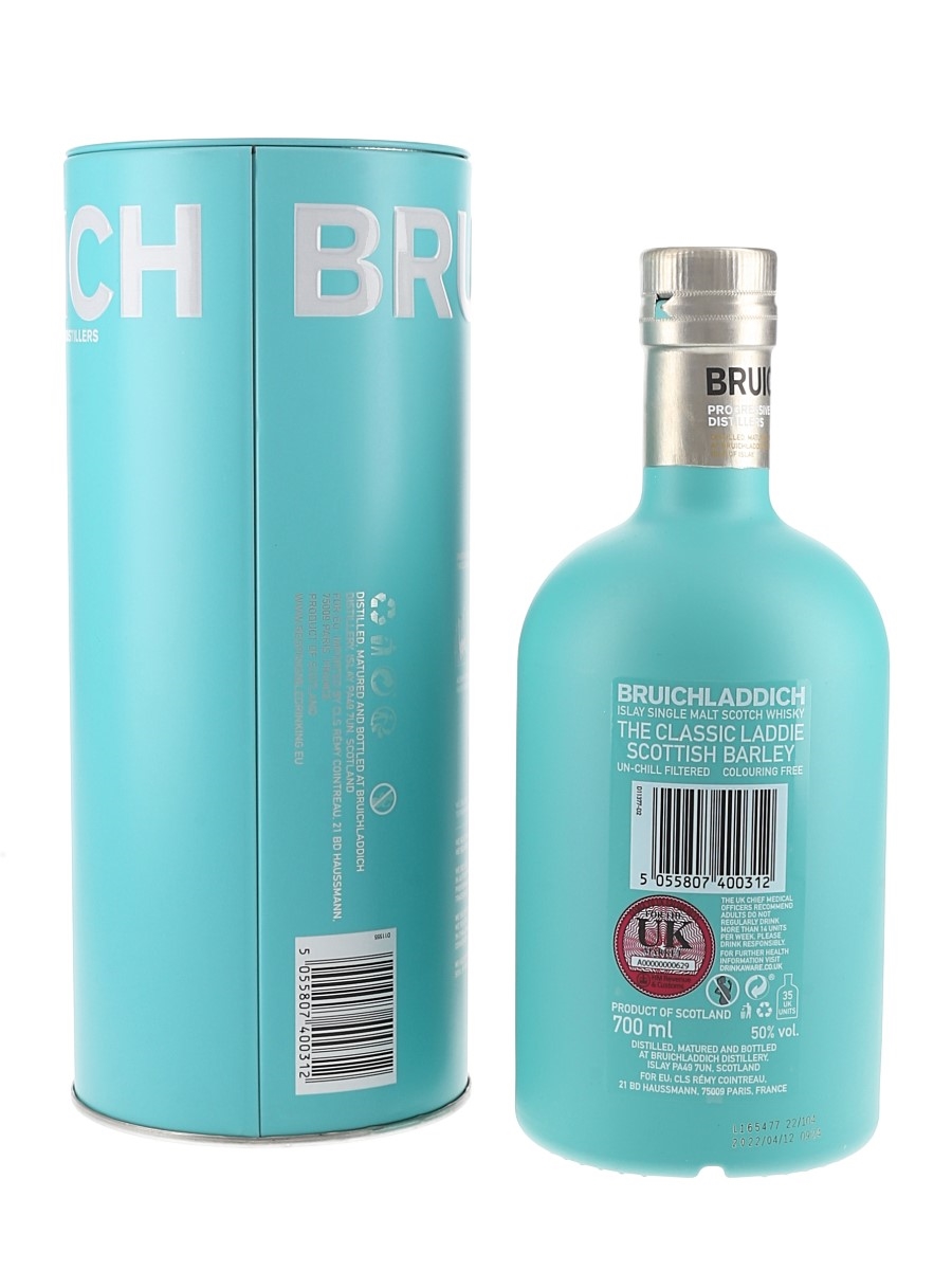 A bottle of Bruichladdich The Classic Laddie Single Malt Scotch Whisky. The bottling code indicates this was bottled in 2016.