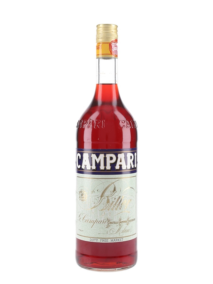 A litre bottle of Campari Bitter liqueur produced in Italy for the duty free market. We estimate this was bottled in the 1980s.