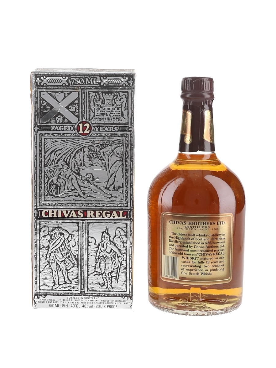 A bottle of Chivas Regal 12 Year Old Blended Scotch Whisky, blended by Chivas Brothers Ltd. We estimate this was bottled in the 1980s.