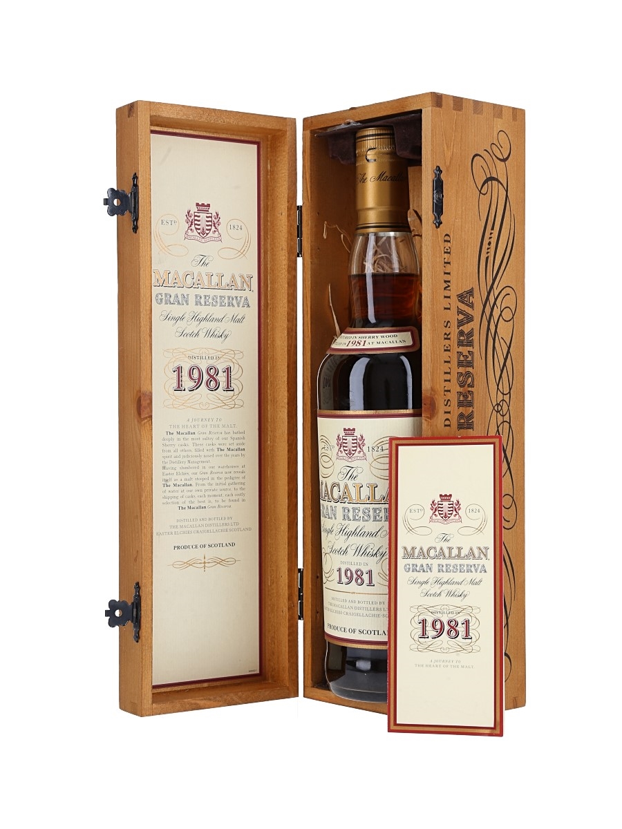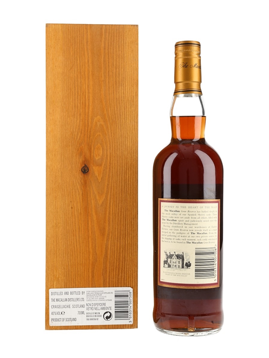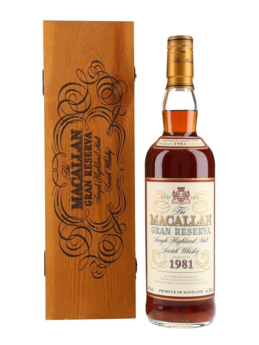 A bottle of The Macallan Gran Reserva Single Highland Malt Scotch Whisky. This was distilled in 1981 and matured in sherry casks. We estimate that this was bottled in the early 2000s.