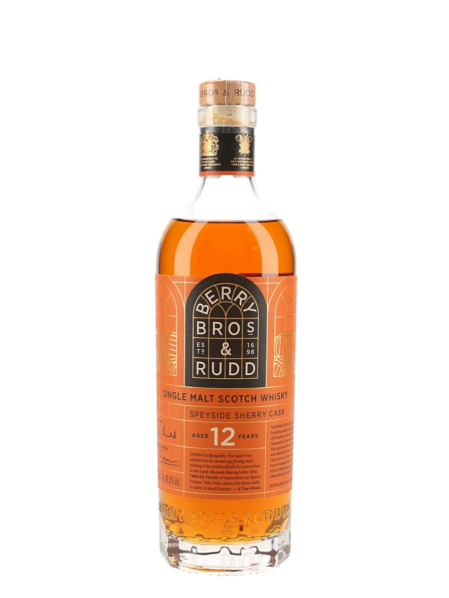 A bottle of Berry Bros & Rudd 12 Year Old Single Malt Scotch Whisky. This was distilled in Speyside and matured in Oloroso Sherry butts.