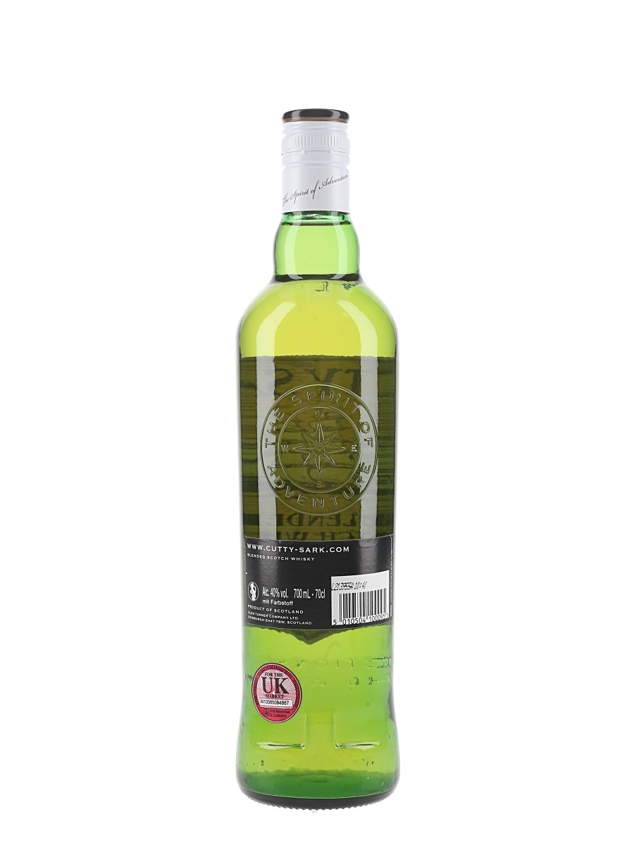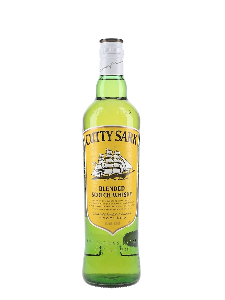 A bottle of Cutty Sark Blended Scotch Whisky.