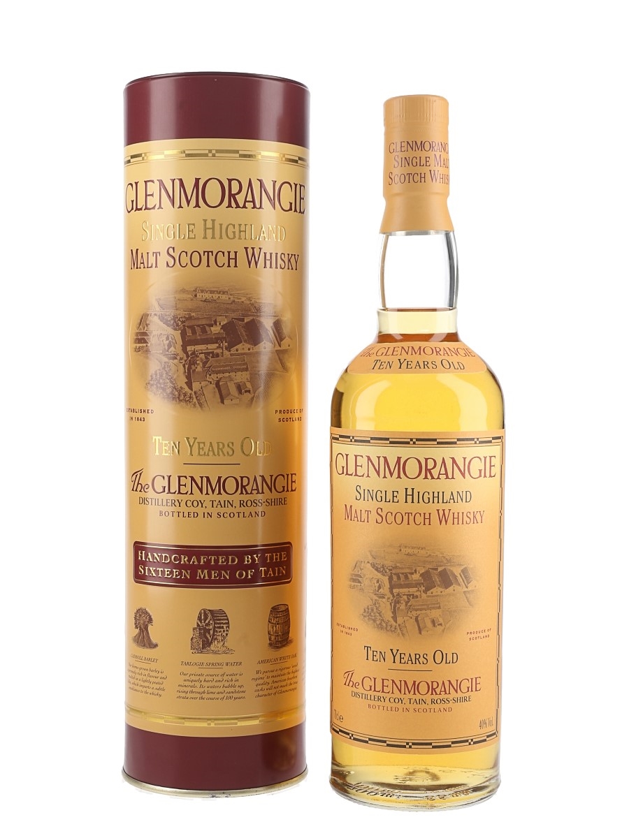 A bottle of Glenmorangie 10 Year Old Single Highland Malt Scotch whisky.