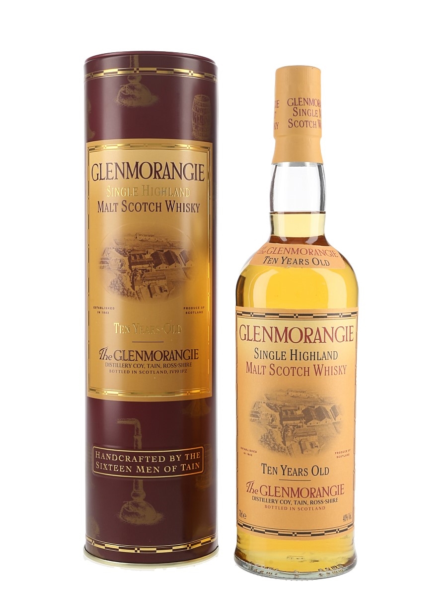 A bottle of Glenmorangie 10 Year Old Single Highland Malt Scotch whisky.