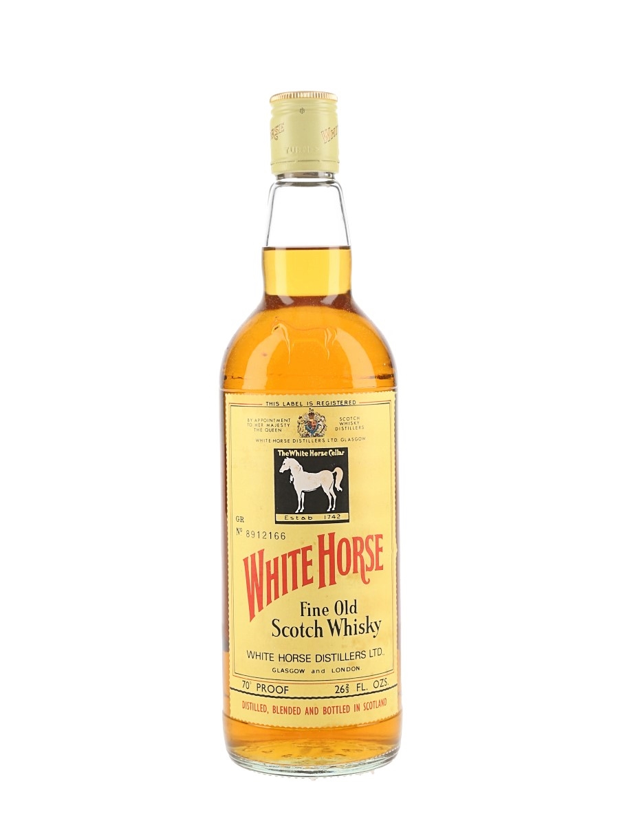 A bottle of White Horse Scotch Whisky distilled, blended and bottled in Scotland by White Horse Distillers Ltd. We estimate this was bottled in the 1970s.