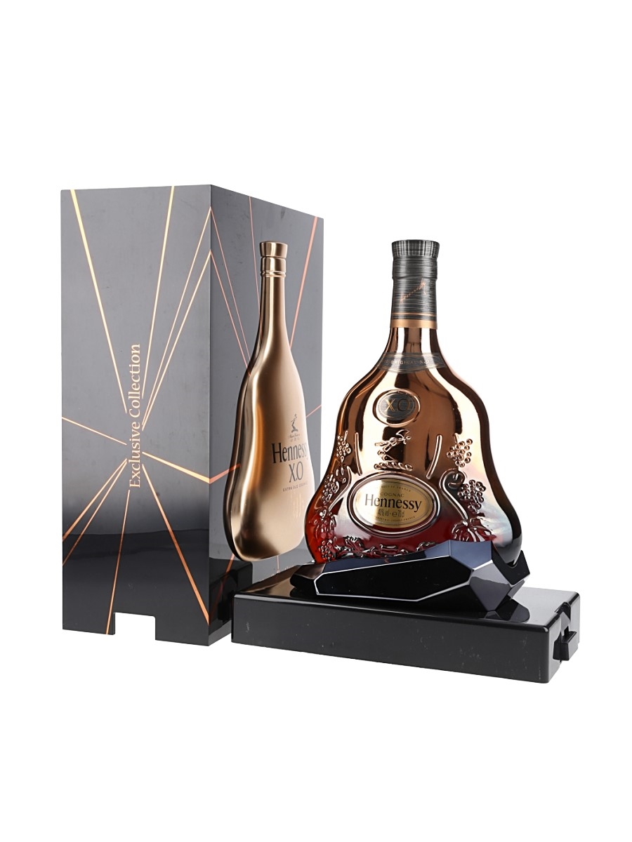 A bottle of Hennessy XO, presented in a gold bottle. This is the fifth edition of the Exclusive Collection, released in 2012.