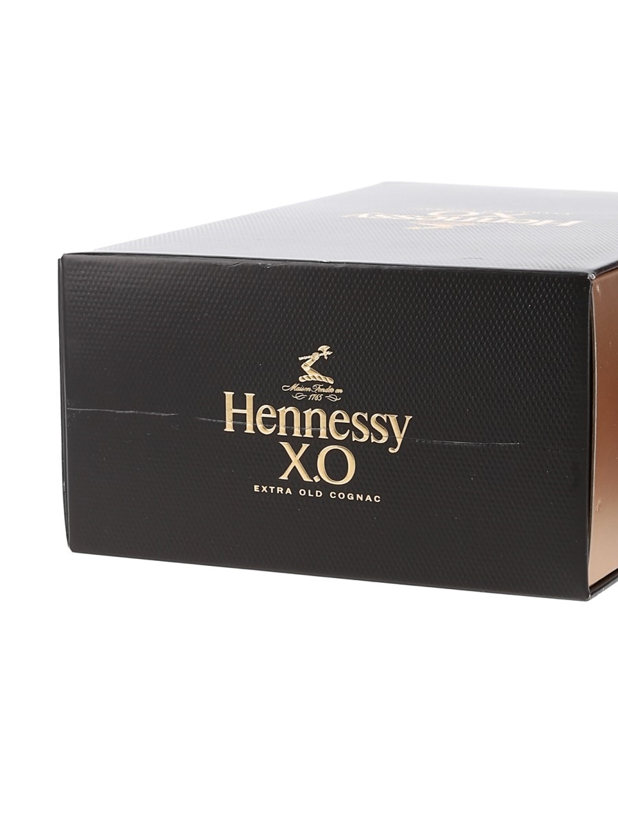 A bottle of Hennessy XO Cognac Fine Old Liqueur brandy.