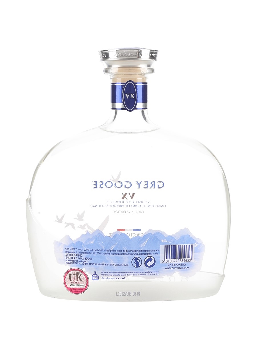 A litre bottle of Grey Goose VX Exclusive Edition Vodka, a mixture of vodka and Grande Champagne Cognac.