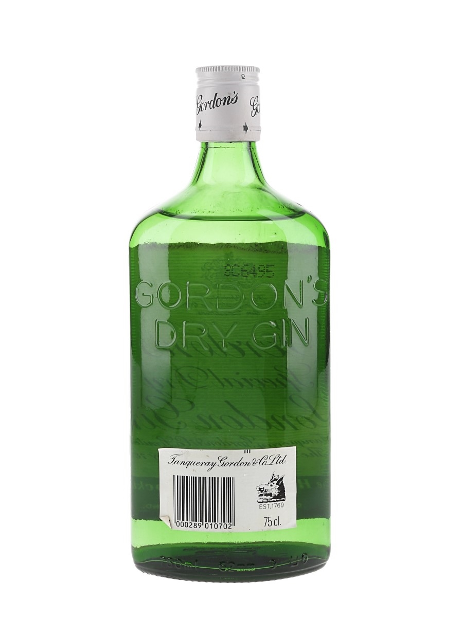 A bottle of Gordon's Special Dry London Gin, distilled and bottled by Tanqueray, Gordon & Co. Limited, The Distillery, London. We estimate this was bottled in the 1980s.