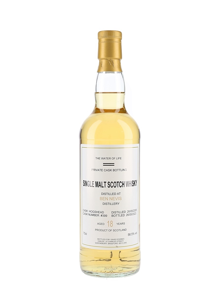 A private cask bottling of Ben Nevis 18 Year Old Highland Single Malt Scotch Whisky. This was distilled on 26 May 2005, matured in a single cask and bottled at 56.5% ABV on 26 May 2023.
