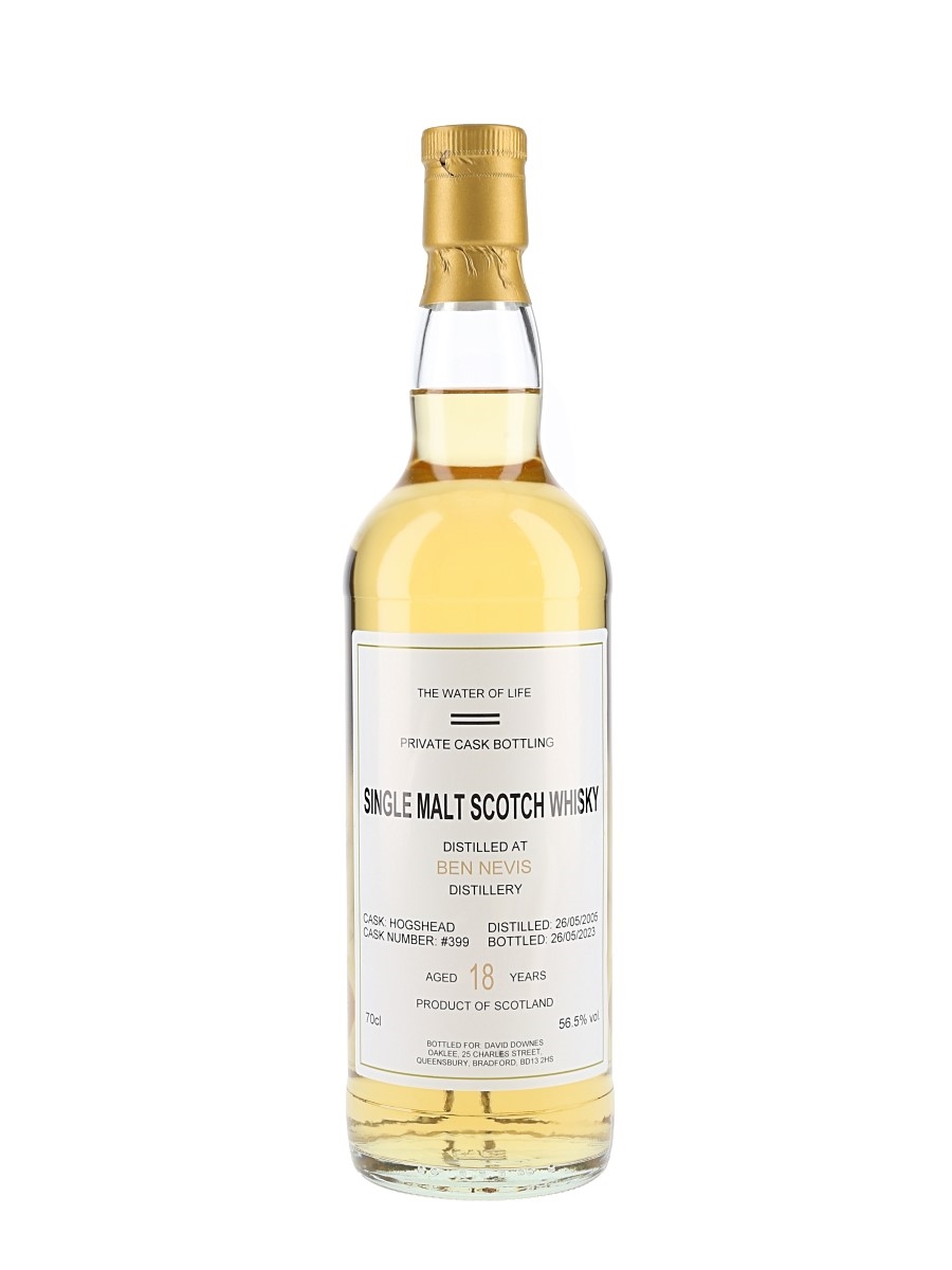 A private cask bottling of Ben Nevis 18 Year Old Highland Single Malt Scotch Whisky. This was distilled on 26 May 2005, matured in a single cask and bottled at 56.5% ABV on 26 May 2023.