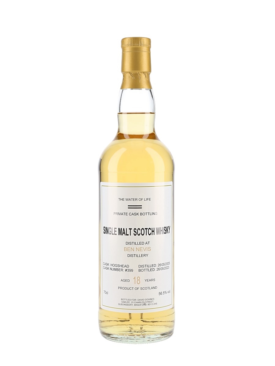A private cask bottling of Ben Nevis 18 Year Old Highland Single Malt Scotch Whisky. This was distilled on 26 May 2005, matured in a single cask and bottled at 56.5% ABV on 26 May 2023.