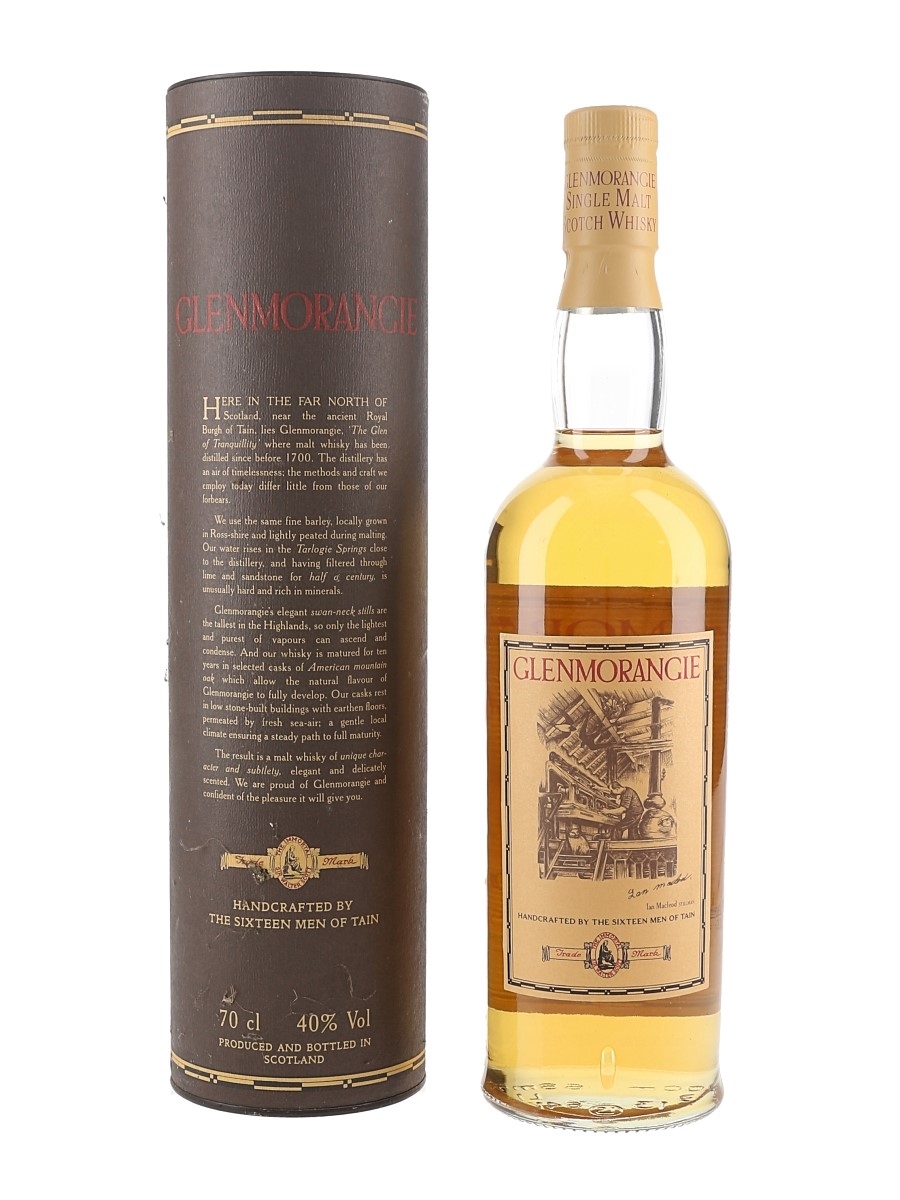 A bottle of Glenmorangie 10 Year Old Single Highland Malt Scotch Whisky. We estimate this was bottled in the 1990s.