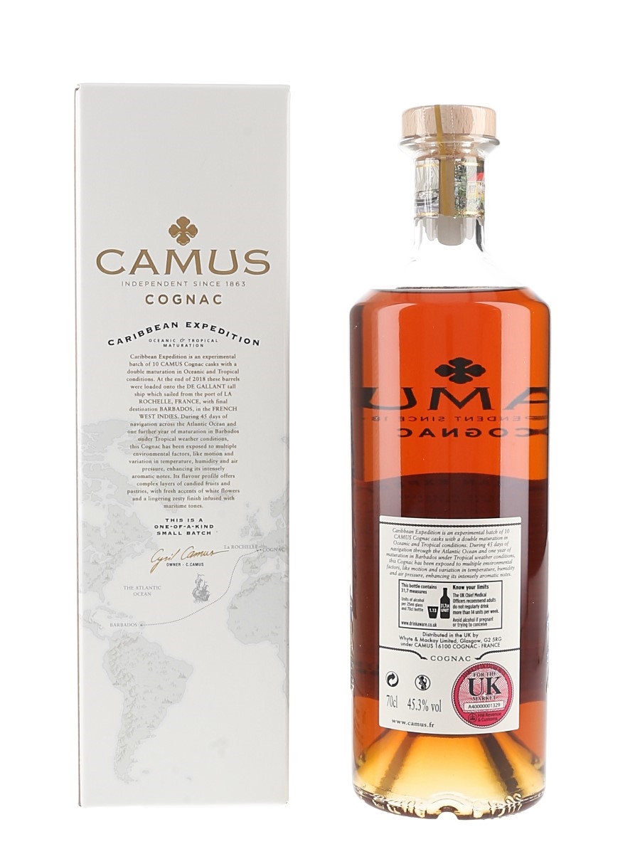 A bottle of Camus Cognac Caribbean Expedition, produced in France and distributed by Whyte & Mackay.