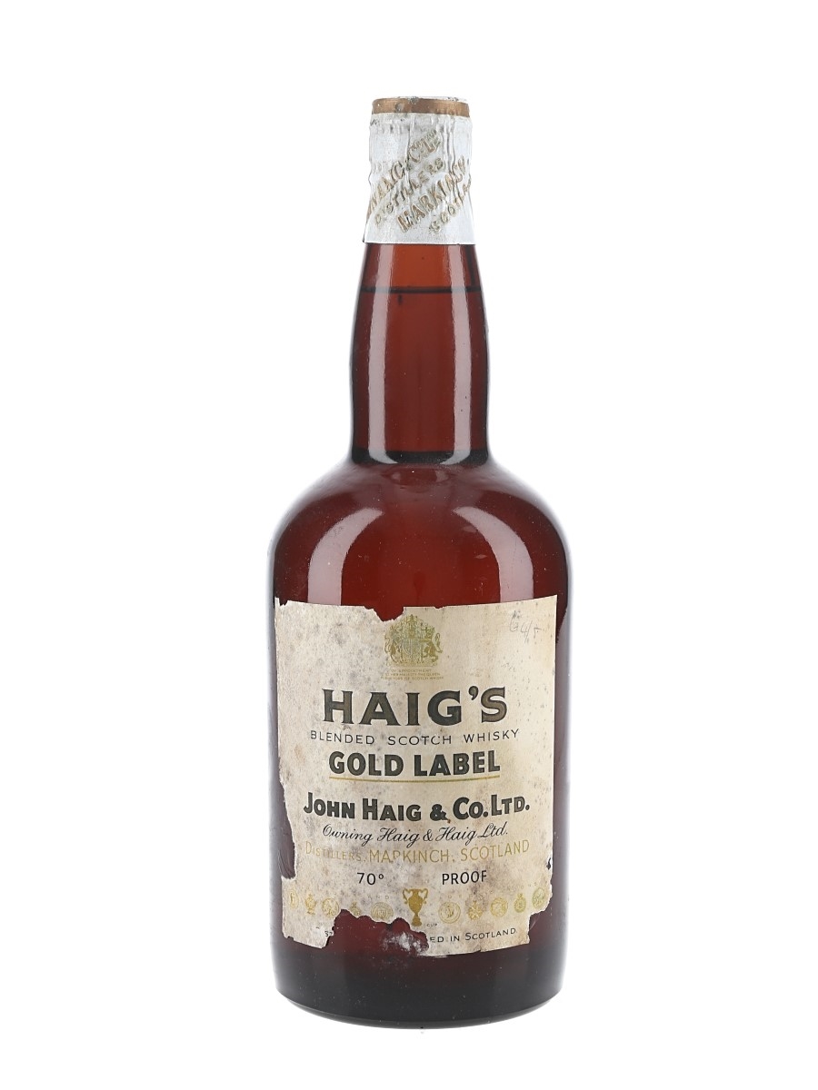 A bottle of Haig's Gold Label Blended Scotch Whisky, sealed with a spring cap closure. We estimate this was bottled in the 1960s.