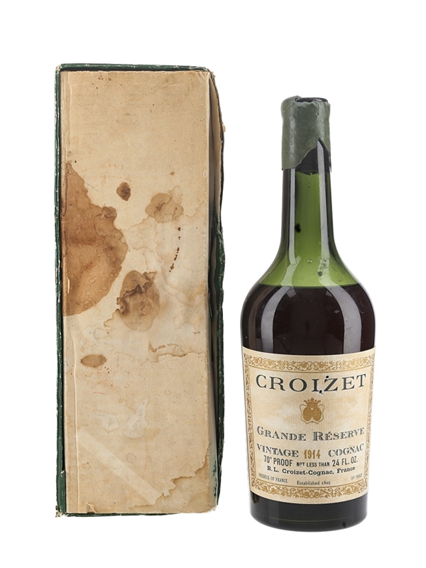 A bottle of Croizet 1914 Grande Réserve Cognac. We estimate this was bottled in the 1950s.