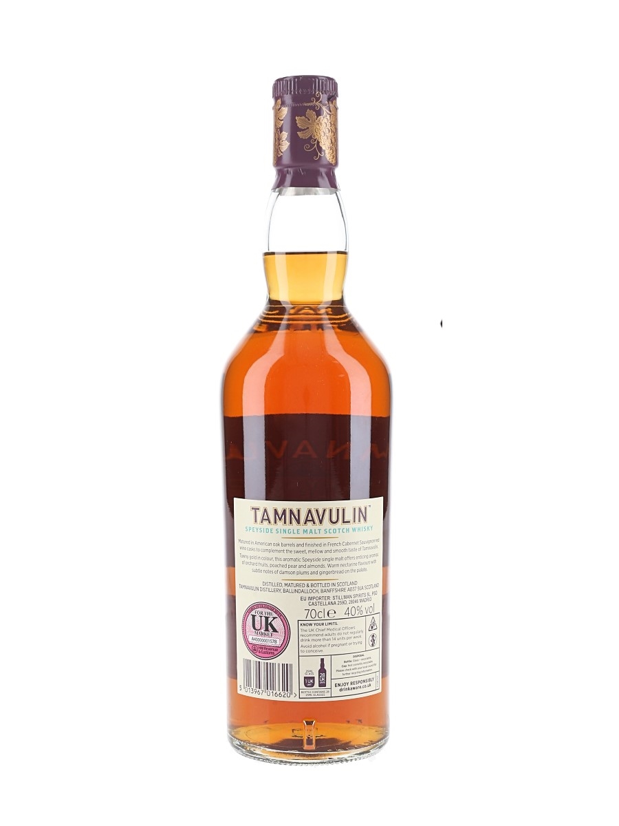 A bottle of Tamnavulin Red Wine Cask Edition Single Malt Scotch Whisky. This was matured in American oak barrels and finished in French Cabernet Sauvignon wine casks.