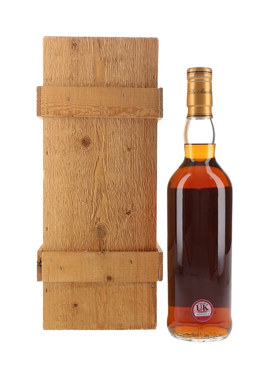 A bottle of The Macallan 1967 Single Highland Malt Scotch Whisky. This was matured in sherry casks for 25 years and bottled in 1992 as part of the Anniversary Malt series.