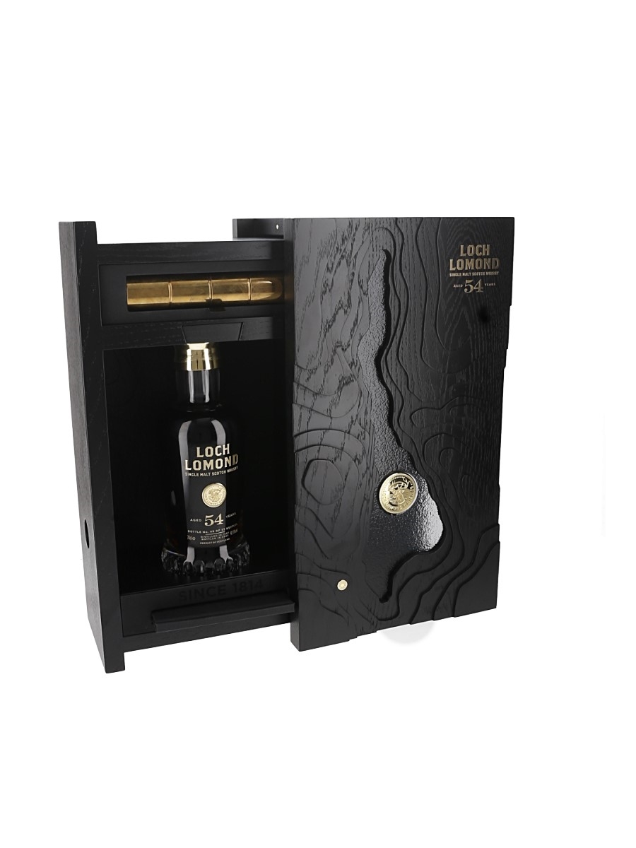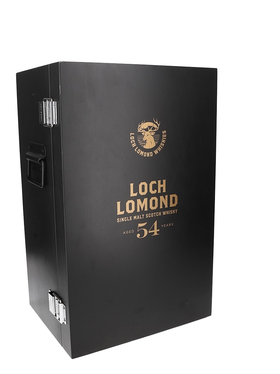 A bottle of Loch Lomond 54 Year Old Single Malt Scotch Whisky. This was distilled in 1967, matured in a refill American oak hogshead before being recasked into a refill European oak sherry hogshead in 1994 and bottled in 2022.