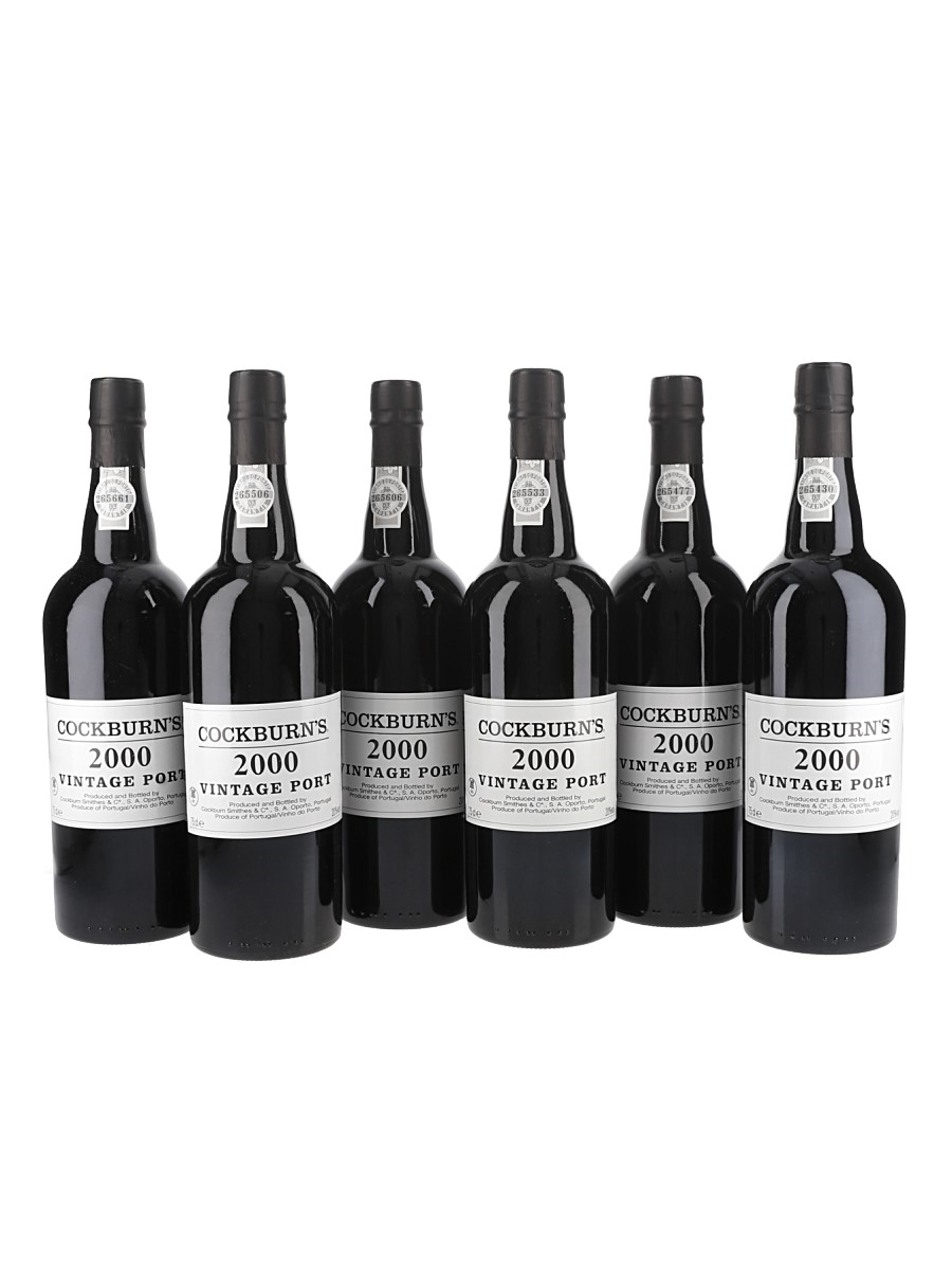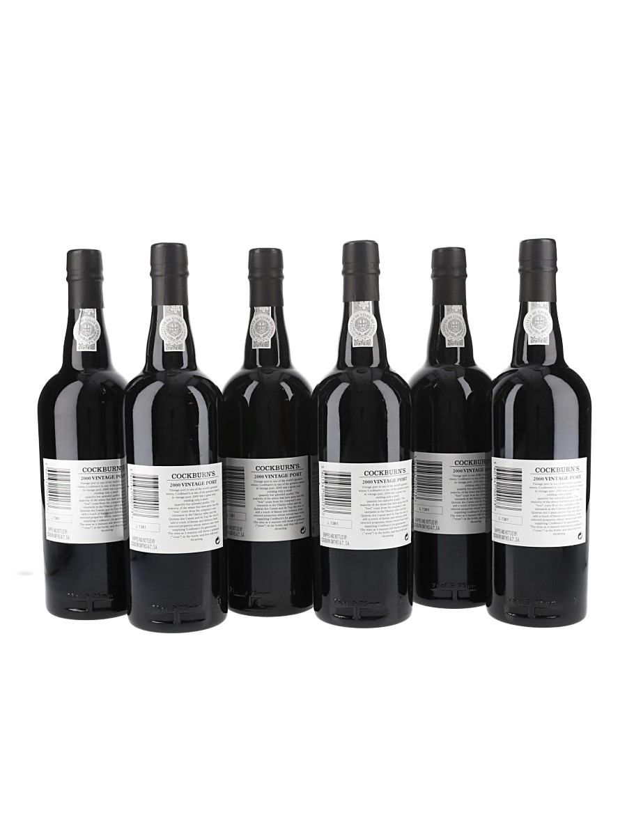 This lot contains six bottles of Cockburn's 2000 Vintage Port, shipped by Cockburn Smithes & CIA Limitada Oporto.