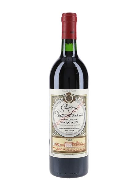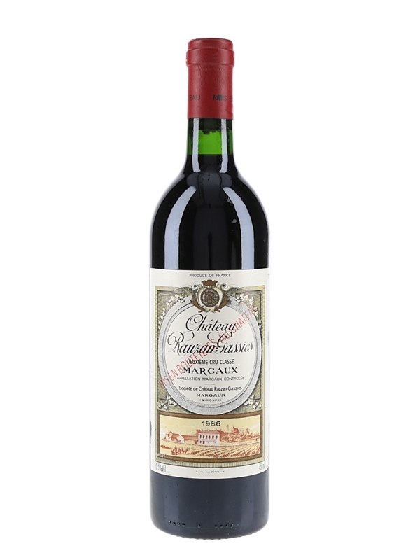 A bottle of 1986 Château Rauzan-Gassies, a Deuxième Cru Classé ‘second growth’ from the Margaux appellation.