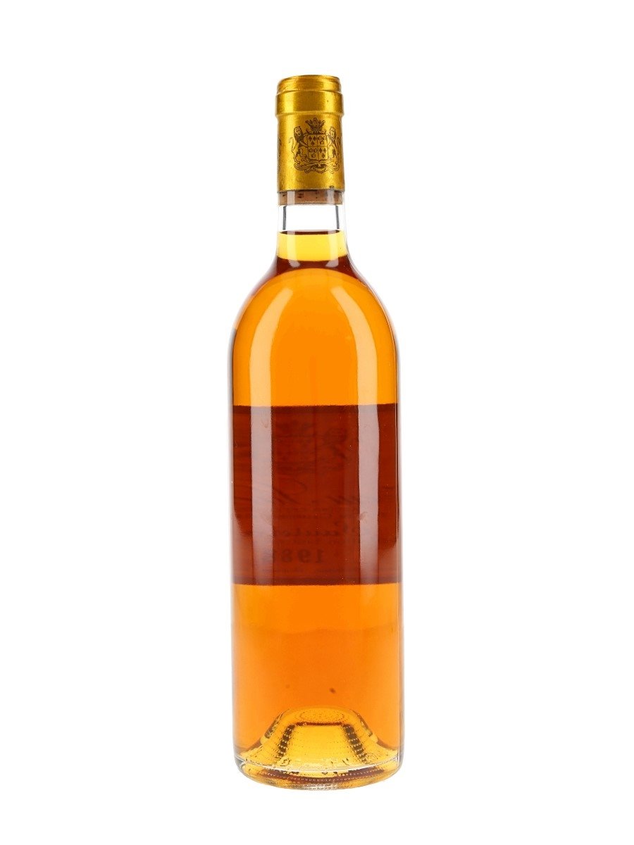 A bottle of 1988 Château Suduiraut Premier Cru Classé Sauternes. Suduiraut is one of the grandest Châteaux in Bordeaux, and the vineyards are planted with 90% Sémillon and 10% Sauvignon Blanc.