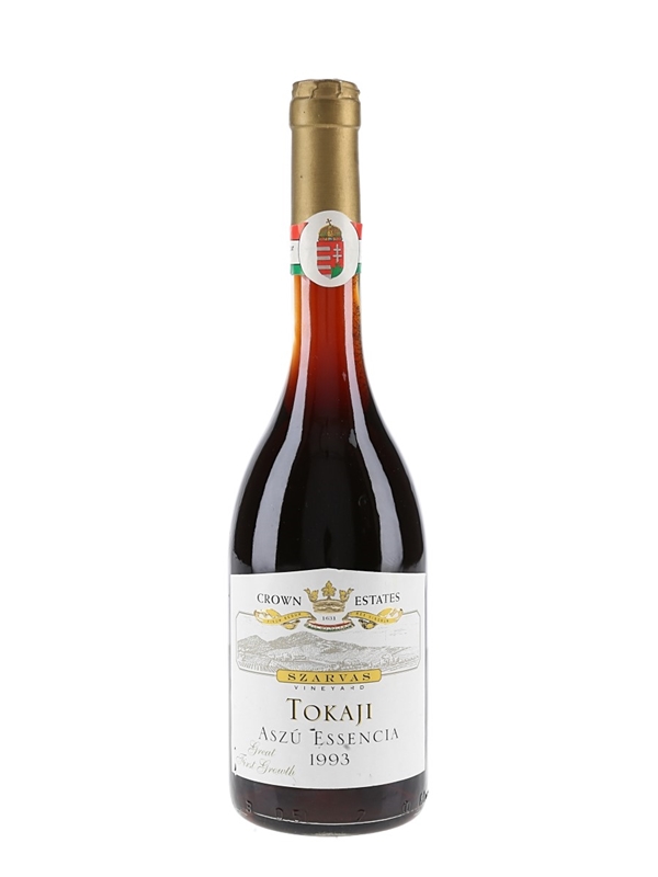 A bottle of 1993 Tokaji Aszú Essencia Szarvas from the Crown estates.