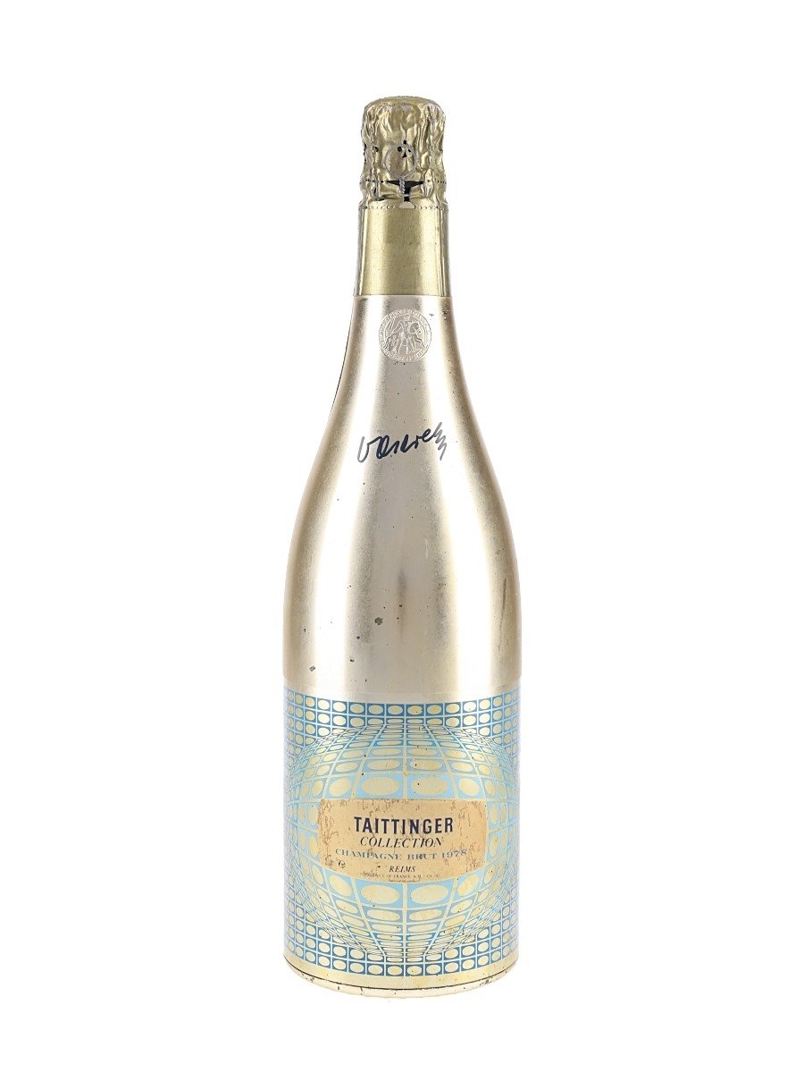 A bottle of Taittinger's vintage 1978 Brut Champagne Collection Victor Vasarelly.